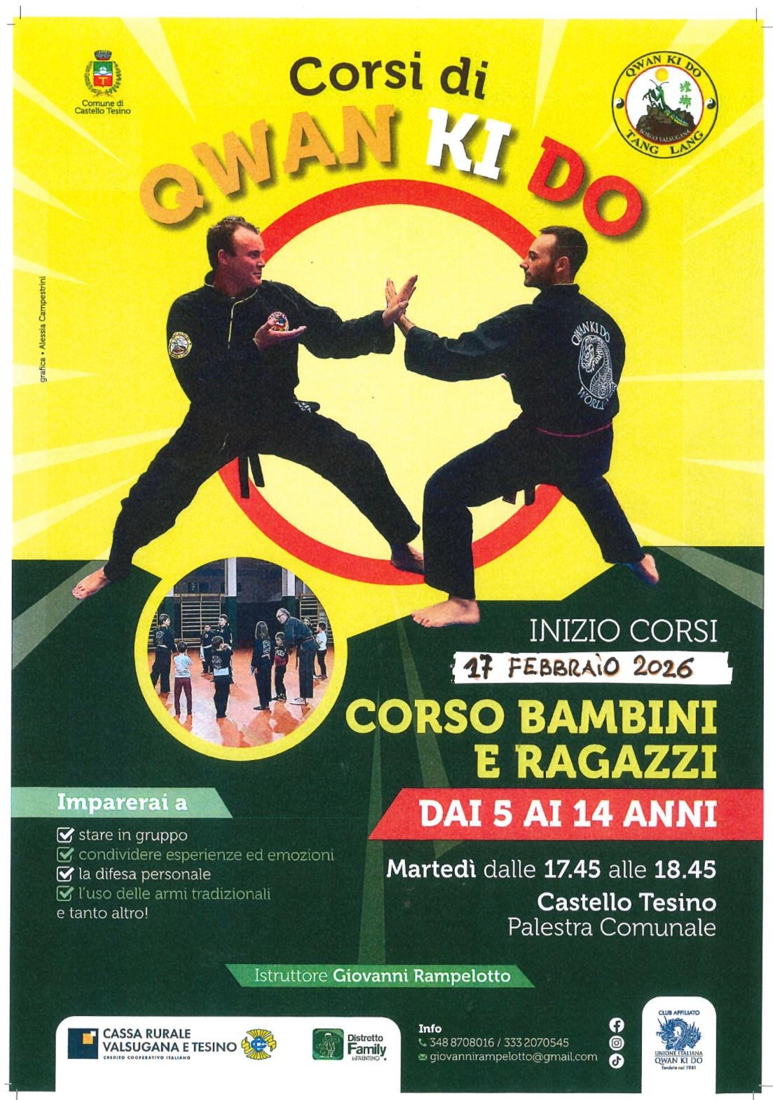 Corso di Qwan Ki Do per bambini e ragazzi dai 5 ai 14 anni Castello Tesino con l'Istruttore Giovanni Rampelotto