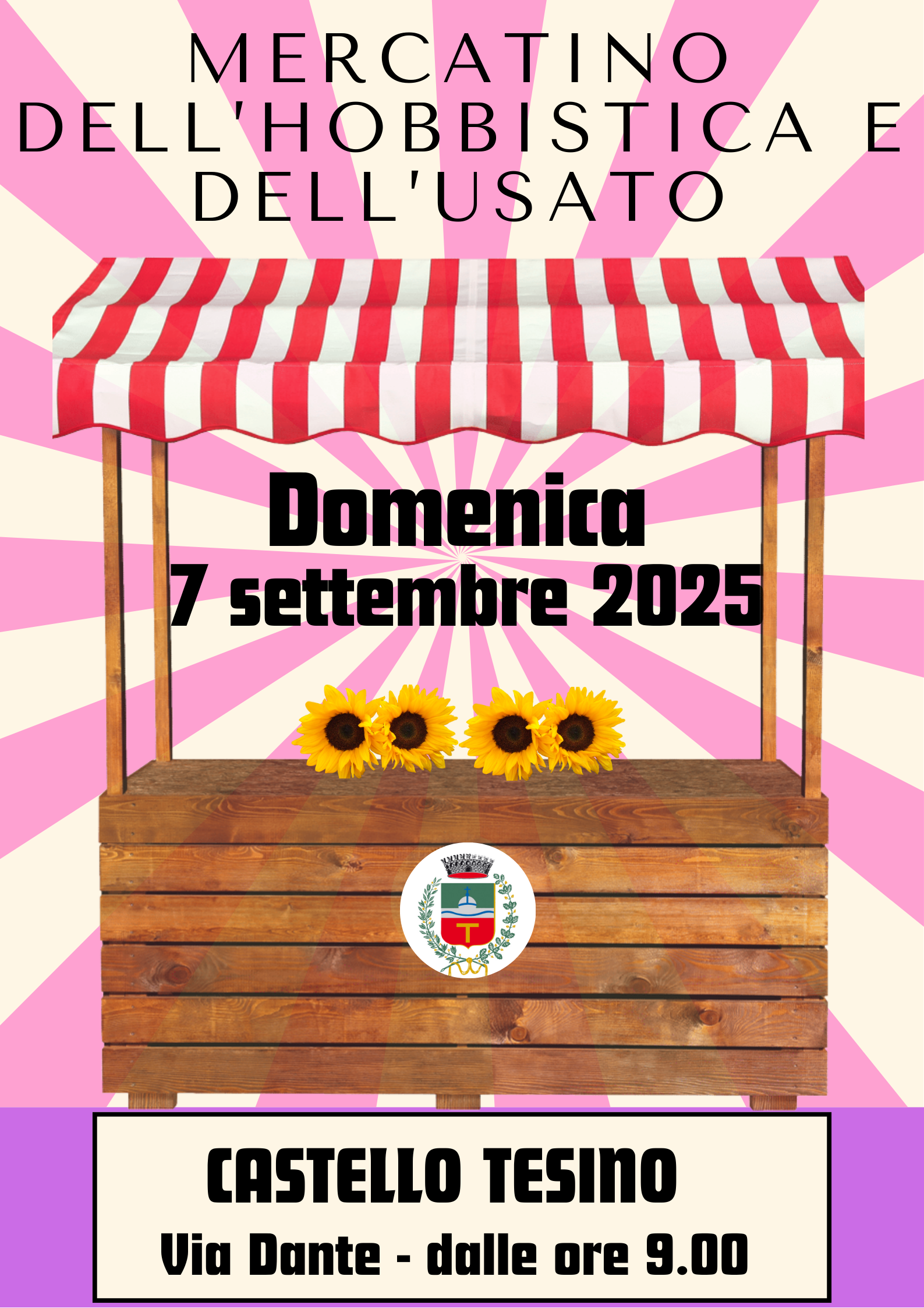 Il mercatino si svolgerà a partire dalle ore 9.00. In caso di maltempo verrà annullato.